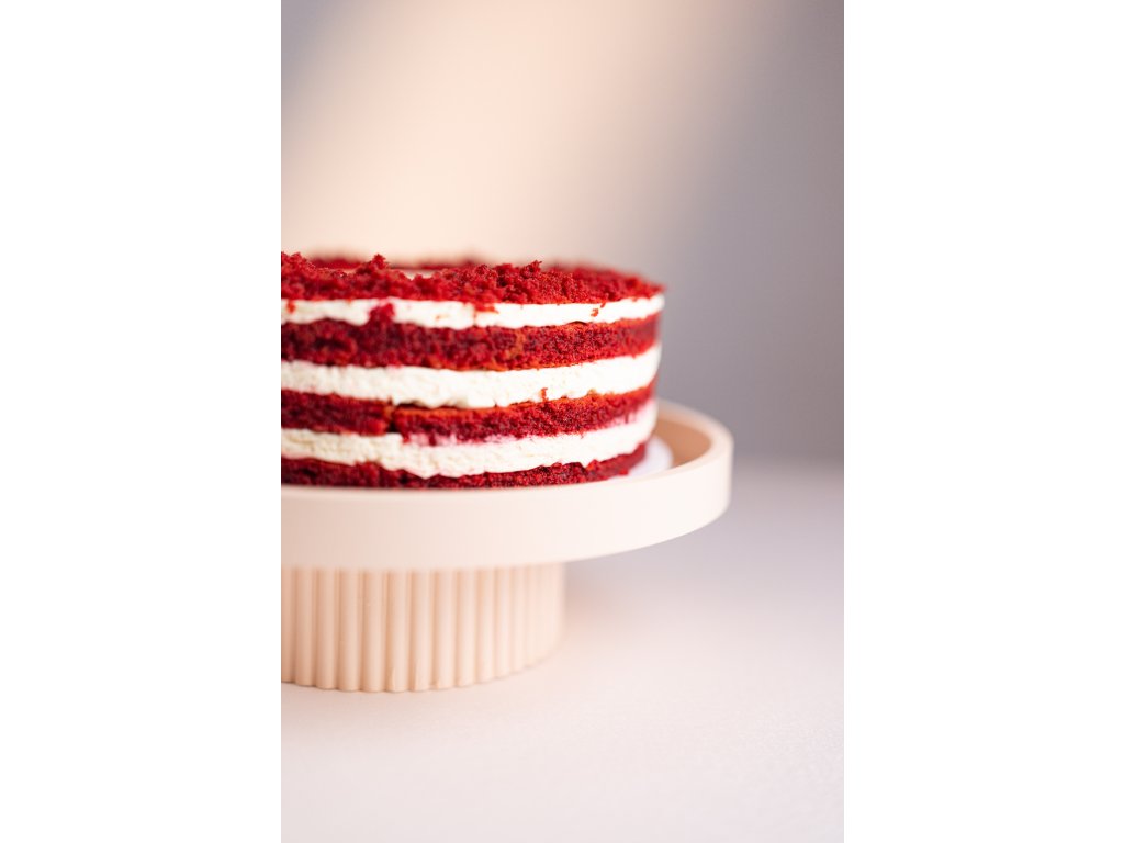 Stylový červený dort s jemným kakaovým tónem. Krém ze smetanového sýra dodává pikantní svěžest. Obľíbený dort na slavnostní příležitosti – nejen na Valentýna.